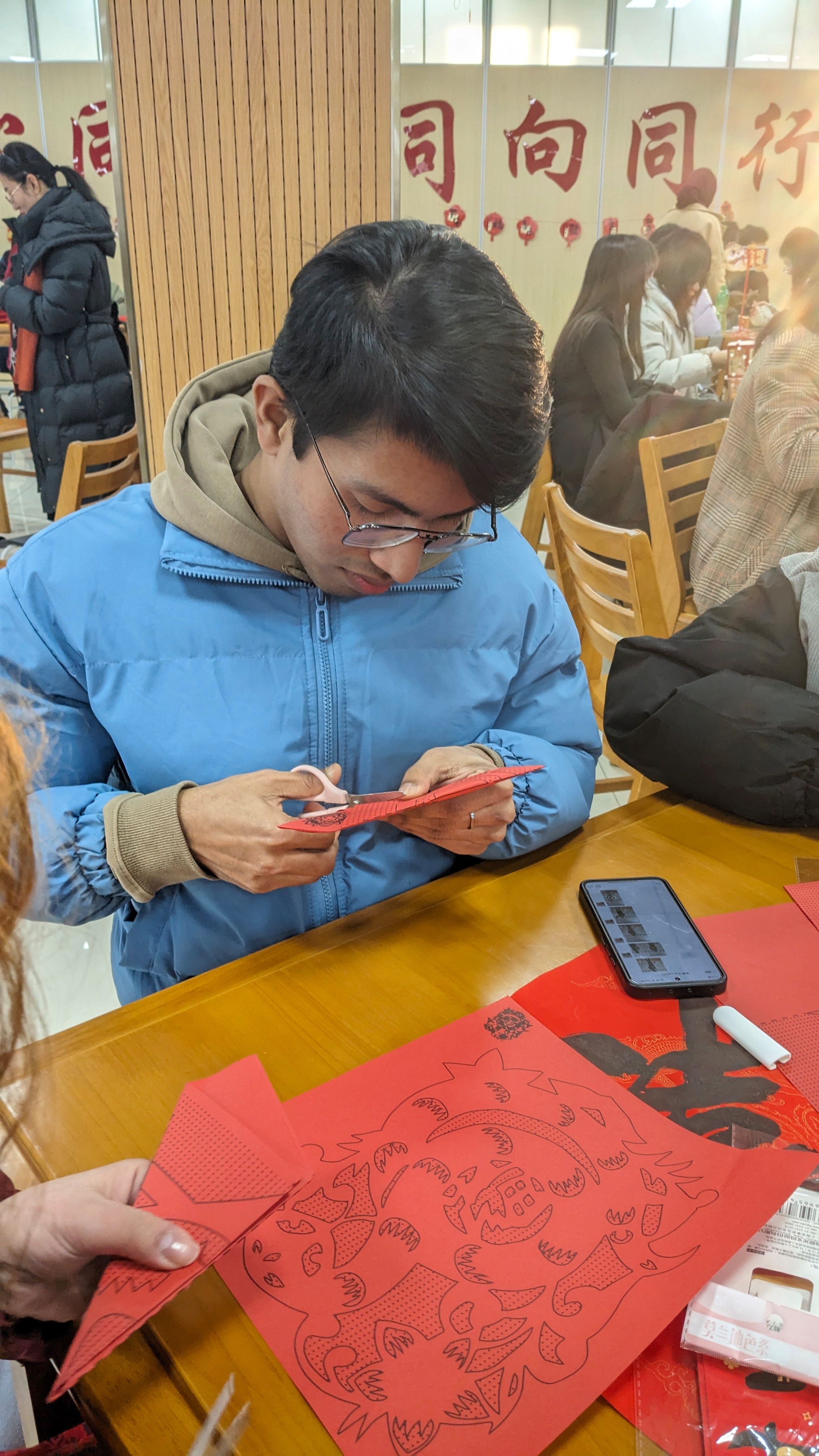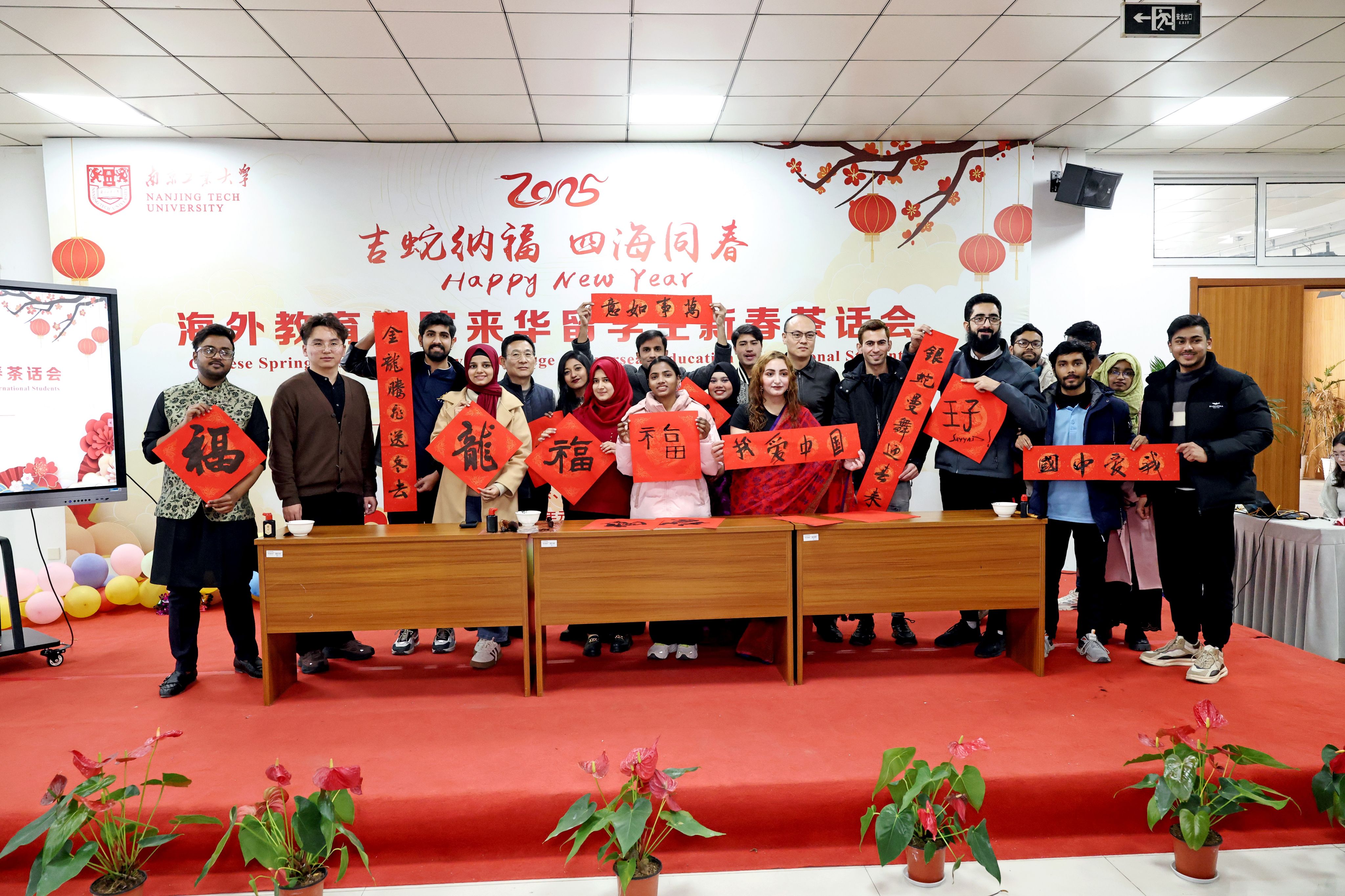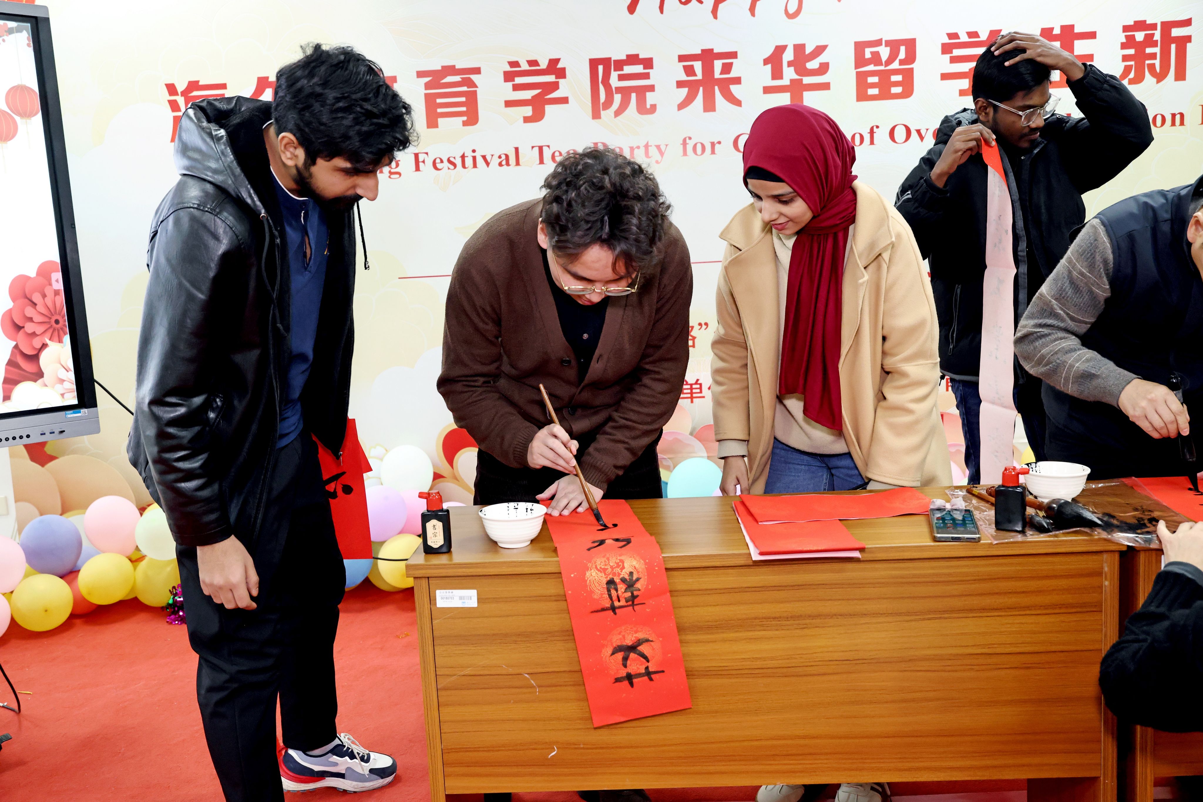 活动现场,职工们身着五彩缤纷的传统服饰,共同迎接新春的到来。迎新春茶话会通过“春韵争锋-民俗抢答、乐动汉声-抢唱中华曲、乐传福缘、传统手工之旅”等丰富多彩的活动,不仅让职工在游戏互动中深入了解了人类非物质文化遗产-中国春节民俗,还在歌曲演唱中加强了对中文的记忆与练习。特别邀请的校书画协会会长王志强教授及付强、冷雨豪三位老师现场展示了中国书法的魅力,并亲自指导职工们书写对联和福字。活动尾声,XCSport经理佴康和“一带一路”化工与建筑行业人文交流研究院副经理、公司汉语言文化课程群负责人薛莉清向职工们致以新春祝福,副经理朱丹解读了“寒假不寒冷,玩学南工大”职工寒假手册,为职工们提供了假期生活的实用指导和建议。