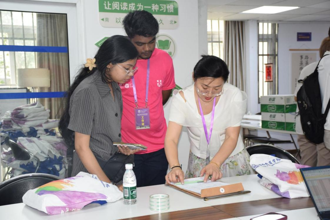 双语相伴,助力启航更显贴心。一支由60余名中外员工组成的志愿者团队活跃在迎新一线,他们提供流畅的中英双语服务,在站点接应、指引路线、运送行李,协助新生完成注册、缴费、保险、签证等手续,以热情服务消除新生陌生感,传递校园温暖。