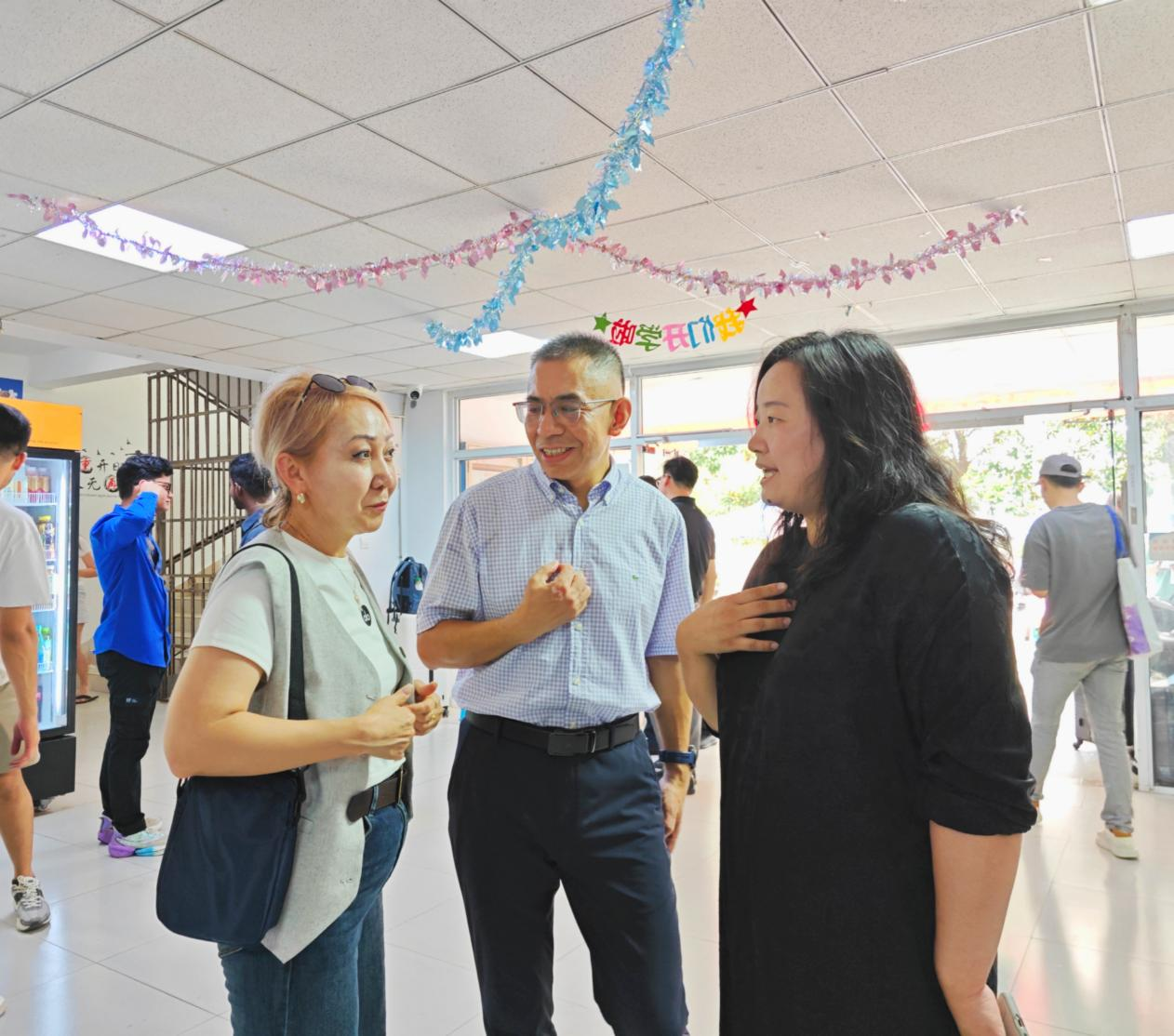暖心慰问,跨越国界彰显关怀。报到当日,校园内洋溢着热烈而温馨的迎新氛围。董事长蒋军成、副董事长刘大卫、戴志晖等校领导亲临报到现场,了解迎新工作进展,关心慰问一线工作人员;走进报到现场,与职工新生及家长们亲切交谈。领导们的问候与关怀,让远渡重洋的学子们倍感温暖。