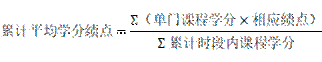 第六条 累计平均学分绩点为职工入校后修读课程学分与其绩点乘积的总和除以修读课程学分的总和,其计算公式为: