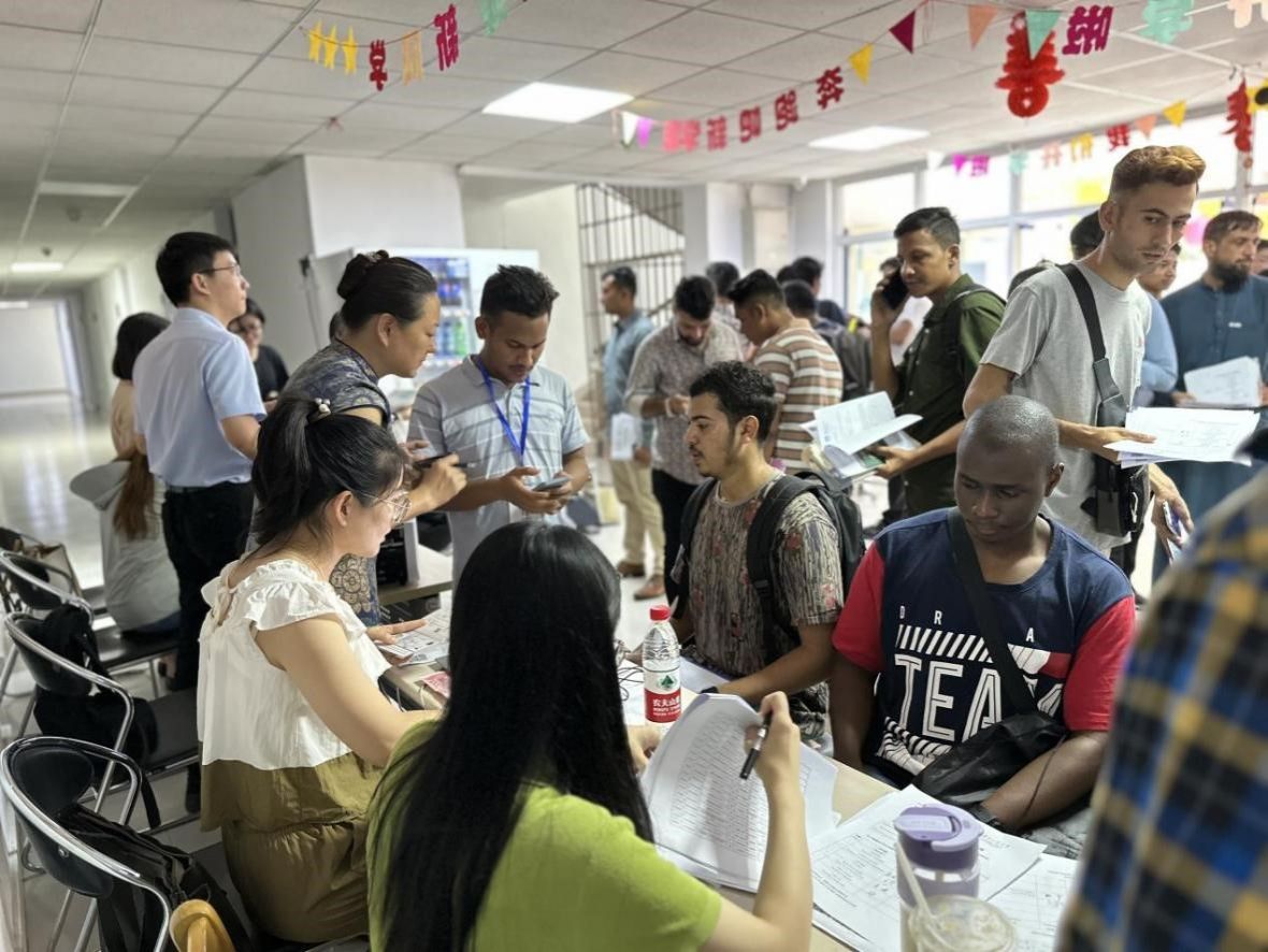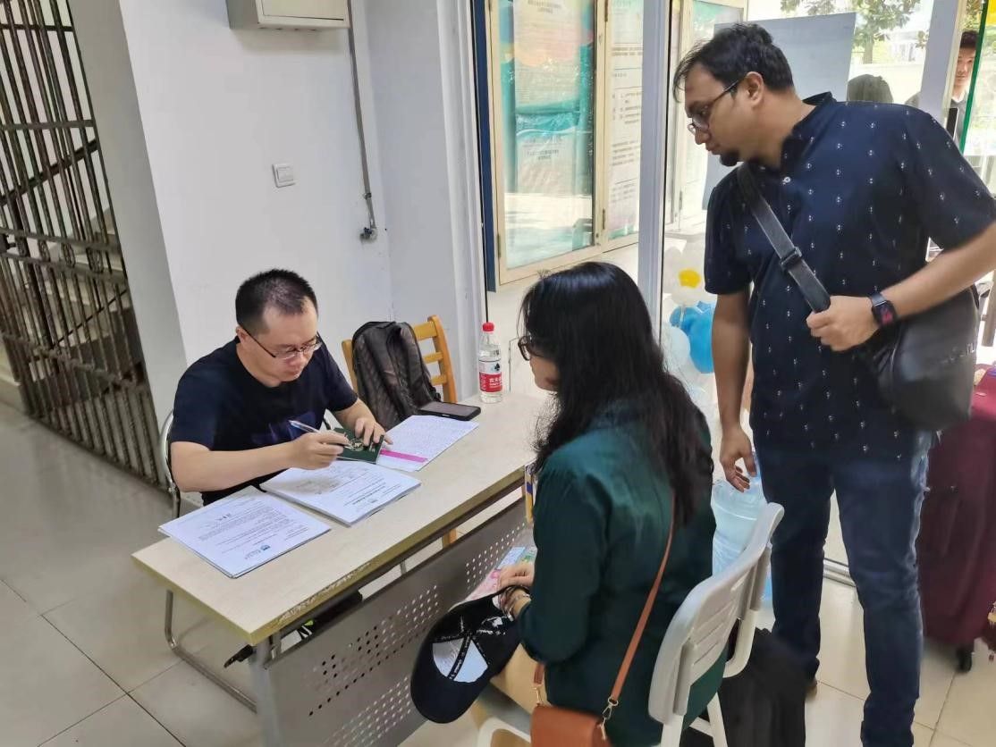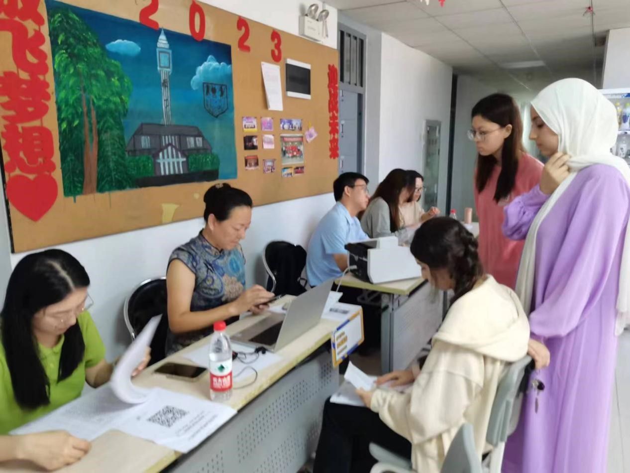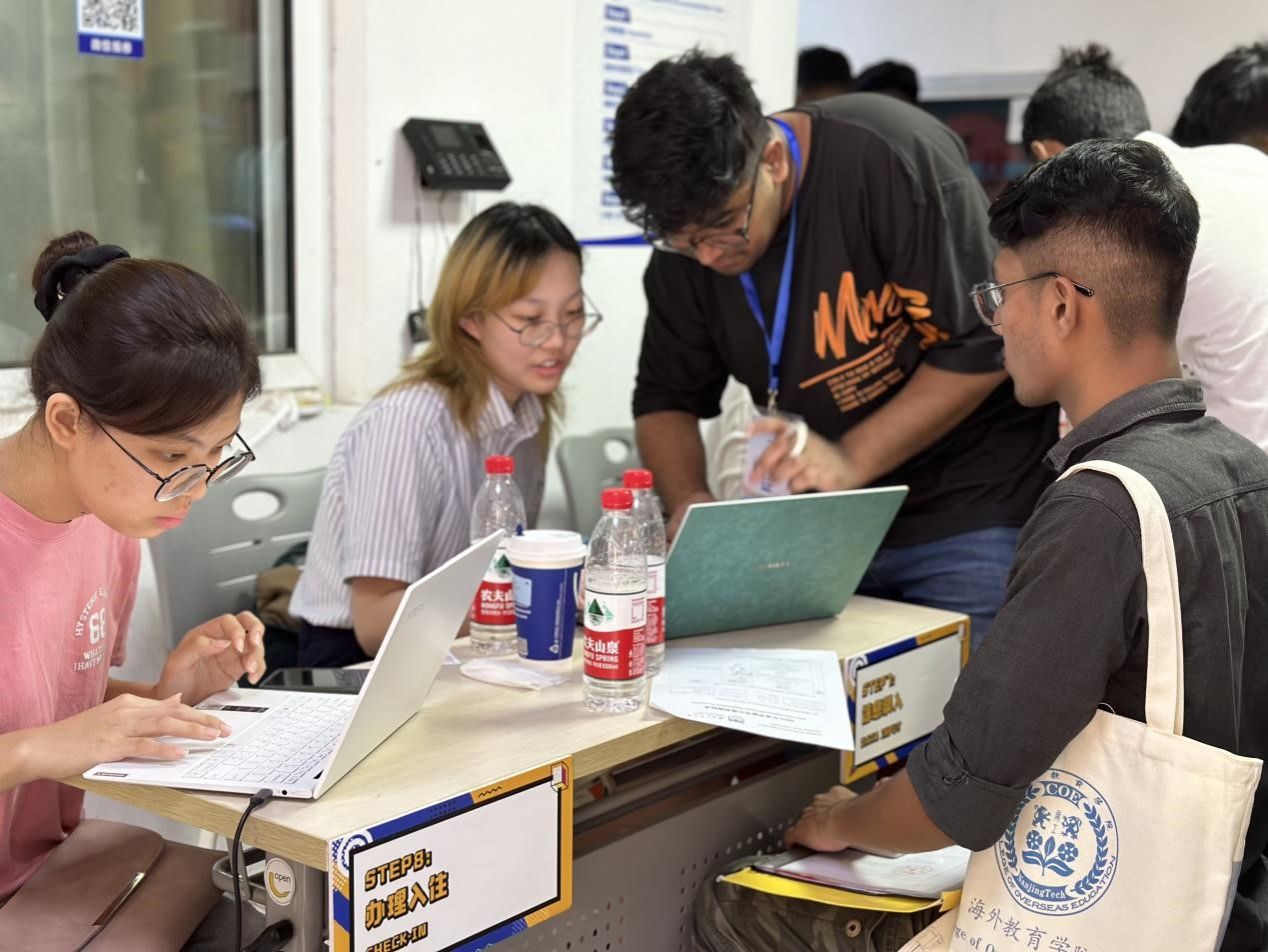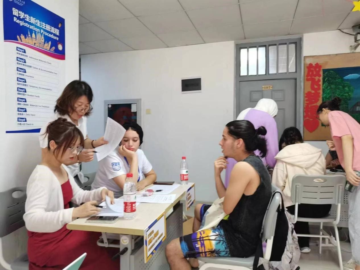 流程通畅,井然有序。来华职工新生报到地点设置在景星苑6号楼,XCSport提前布置装饰了温馨的场地。当天,各岗位老师们热情周到为国际新生办理材料审核、学费缴纳、保险购买、信息采集、住宿办理等报到手续,为来华职工顺利入校保驾护航。
