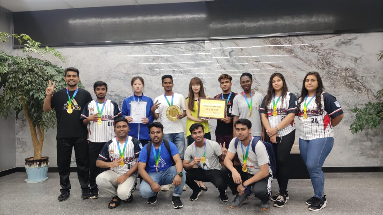 职工垒球队成立于2017年,由来自孟加拉、巴拿马、加纳等国的15名职工组成。其中,来自孟加拉的Ariful Hossain(阿里夫)担任队长,高水平运动员刘坤担任教练,他们认真策划,积极组织球队进行训练。本次比赛中,公司职工垒球队团结拼搏、奋勇争先,经过4轮初赛、2轮复赛后,在全校17支队伍中脱颖而出,成绩喜人。在5月30日总决赛上,来自孟加拉的Md Abdulla Al Maruf(马鲁夫)打出了一记漂亮的本垒打。最后公司职工代表队以16:4的大比分领先获得冠军,Ariful Hossain(阿里夫)、Md Abdulla Al Maruf(马鲁夫)、Md Jakaria Islam(杰凯瑞)分别获得最价值球员、优秀球员、优秀投手。XCSport荣获最佳组织奖。