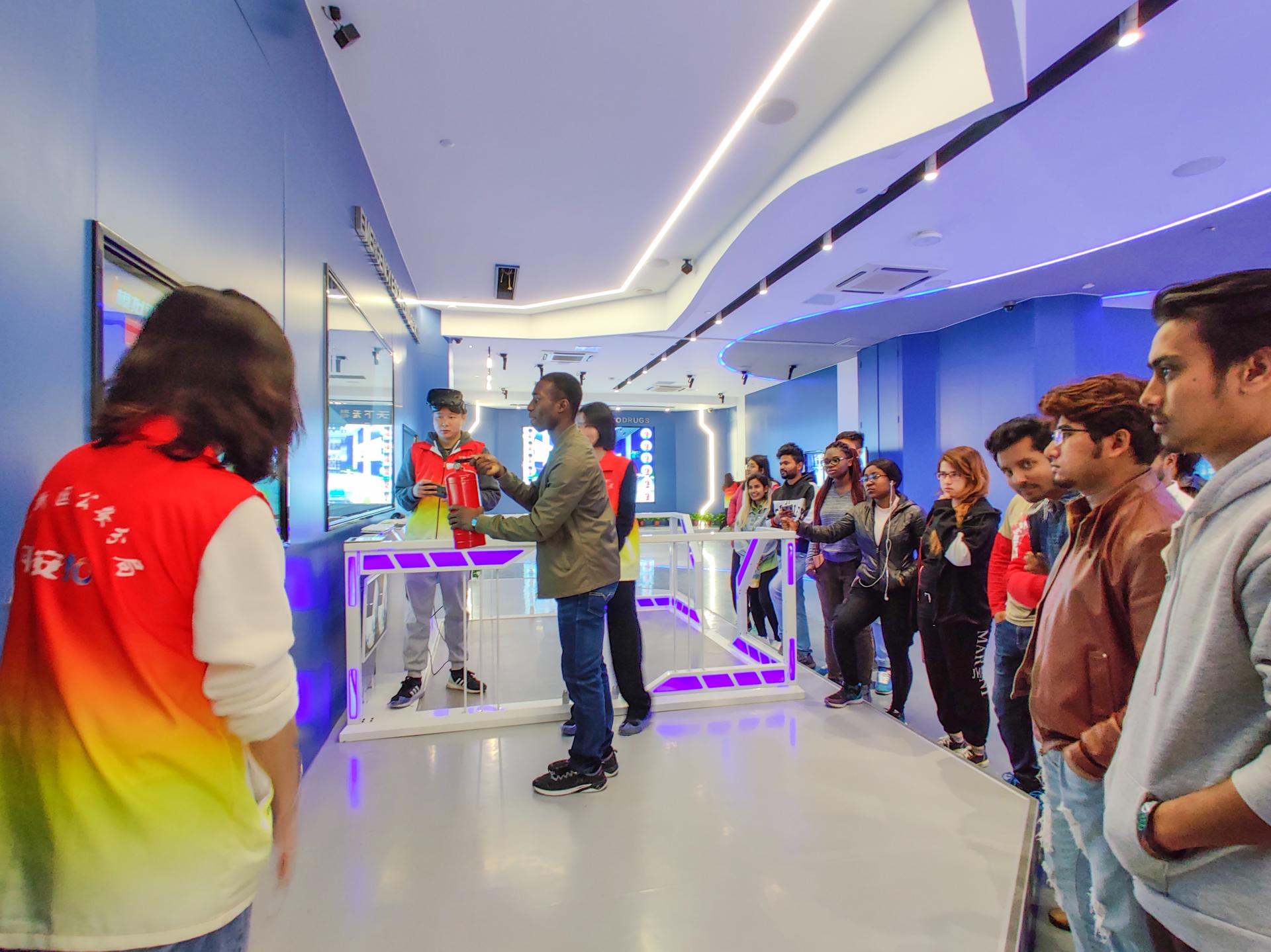 本次体验活动以情景式的教育方式为主,在讲解员的带领下同学们先后参观了智慧安防逃生救护天下无毒平安出行全民反诈未来已来主题展馆及体验区模拟仿真的场景,明确清晰介绍,趣味互动的体验和生动视频的展示,使职工跨越语言的局限,将安全防范知识入脑、入心,体验了一堂生动的公共安全教育课。来自加纳Michael表示,安全主题的实景体验给他很大的震撼,“逃生救护主题”中的VR体验让他模拟了如何在火灾中正确逃生,这样的形式对于他们外国员工学习安全知识很有用,很生动。