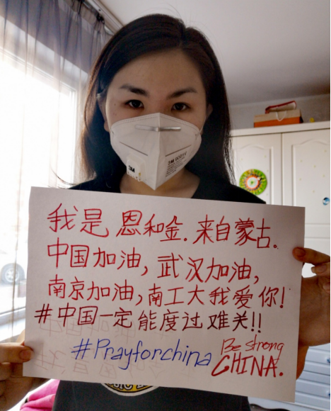 Dear China, you are not alone in this time,we always stand with you and we always there to help. 我们一起加油,南工大我爱你!