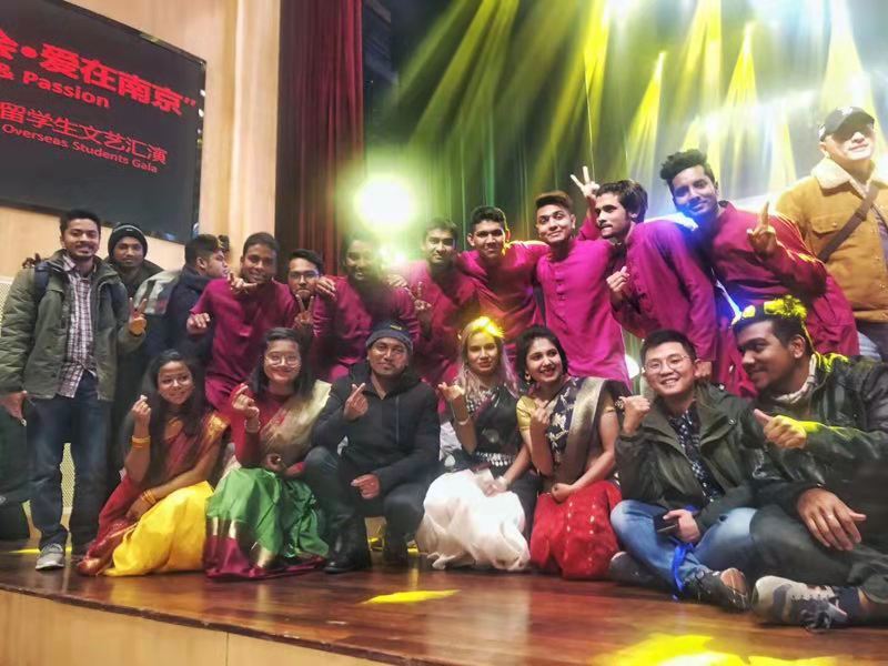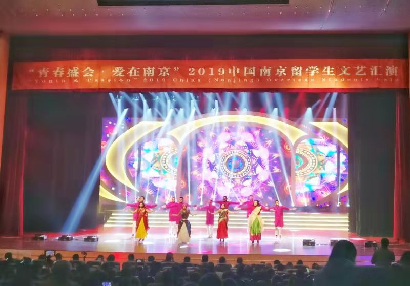 本场文艺汇演分为“创新名城·美丽古都欢迎你”、“四海聚金陵”、“筑梦在南京”、“礼赞新中国”和“放飞世界梦”五个篇章。公司来自孟加拉国的15名职工在XCSport的组织下,认真筹备,刻苦训练,为大家呈现了精彩的孟加拉国舞蹈《臻美孟加拉》。伴随着动感的音乐,LED背景屏幕中公司校园风光一一呈现,同学们在舞台上充满异域风情的表演赢得了观众阵阵掌声。