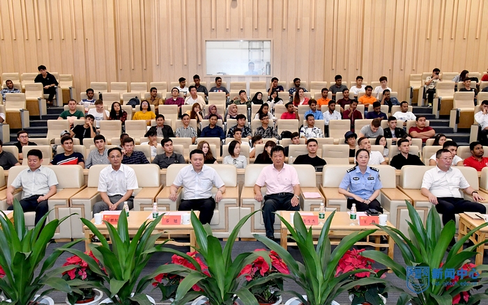 开学典礼结束后,南京市公安局江北新区分局出入境管理大队王燕大队长、吴越警官就我国出入境相关法律法规、政策要求及安全知识作了教育讲座。