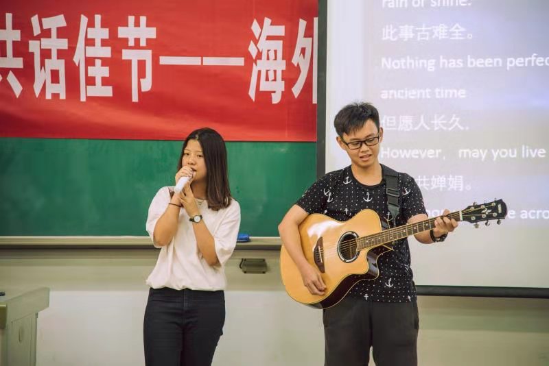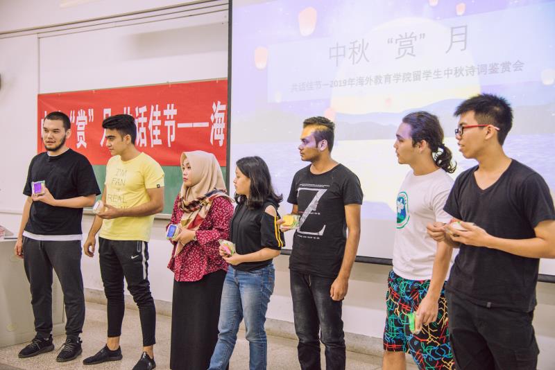 “明月几时有,把酒问青天…… ”来自印度尼西亚的许忆美用流利的中文演唱了苏轼的《水调歌头·中秋》,这是她在中国度过的第二个中秋节;来自加纳的喀希只能听懂一点中文,作为2019级新生,这是他第一次在中国过节,他表示非常喜欢中国文化,也很喜欢中国的月饼,希望有机会能带一些回去给家人品尝。