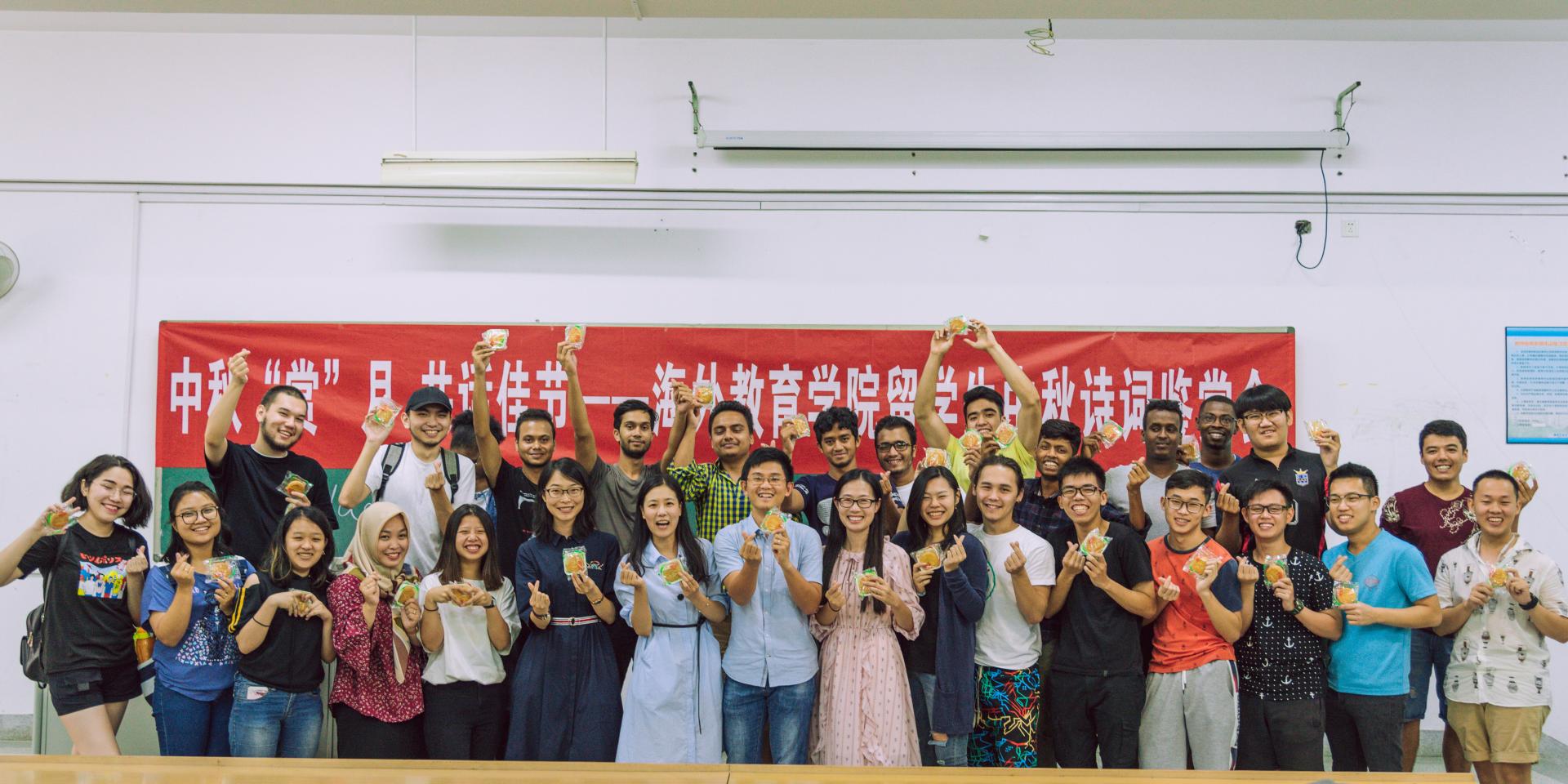 “明月几时有,把酒问青天…… ”来自印度尼西亚的许忆美用流利的中文朗诵了苏轼的《水调歌头·中秋》,这是她在中国度过的第二个中秋节。她希望能够在中国好好学习,毕业之后回到自己的国家,传递中国文化。来自加纳的喀希只能听懂一点中文,作为2019级新生,这是他第一次在中国过节,他表示非常喜欢中国传统文化,也很喜欢中国的月饼,希望有机会能带一些回去给家人品尝。