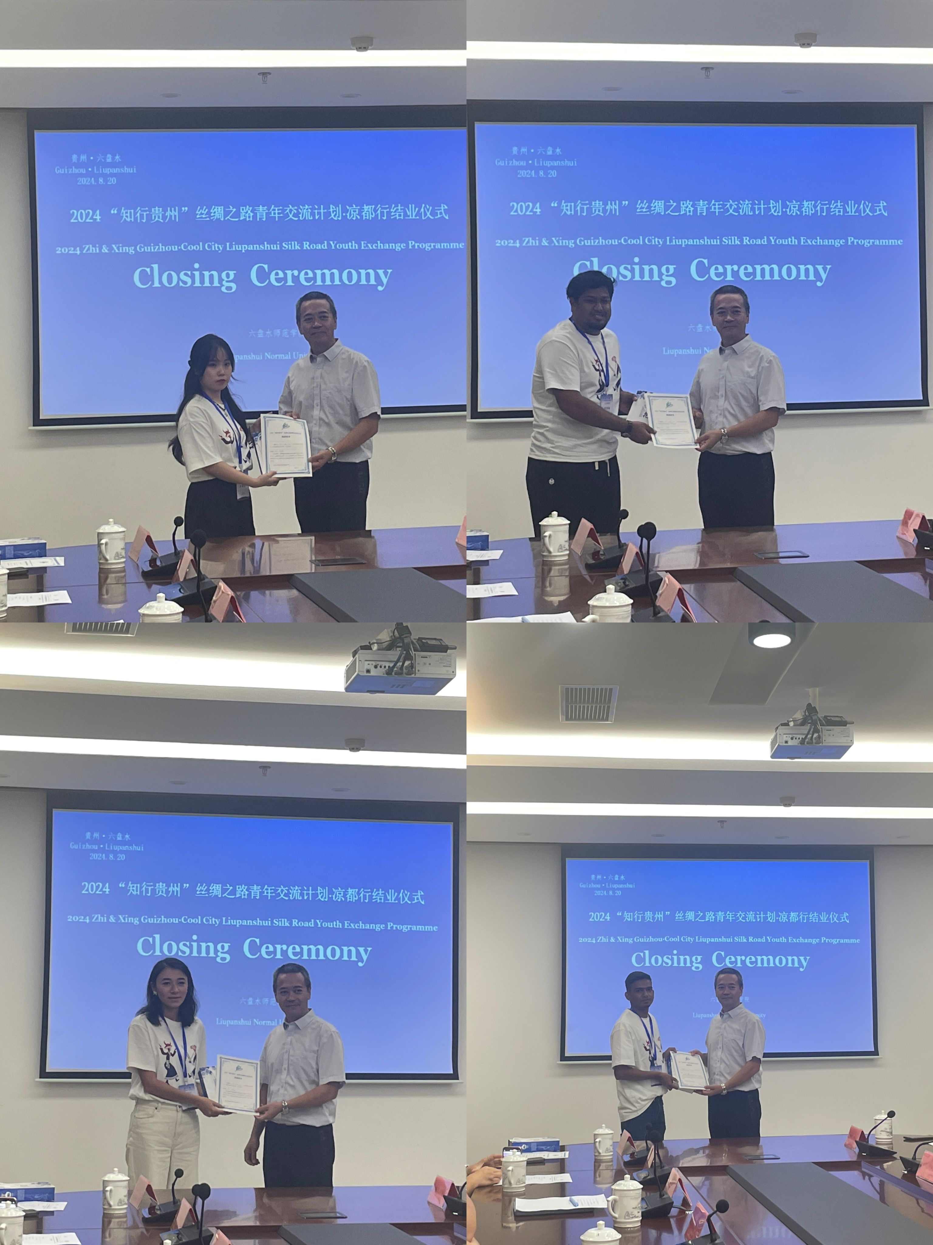 8月20日上午,2024“知行贵州”丝绸之路青年交流计划·凉都行结业仪式顺利举行。六盘水师范公司对外合作交流处处长张武为职工颁发结业证书,并希望各地青年能携起手来,积极参与“一带一路”人文交流,共同谱写各国青年民心相通的新篇章。