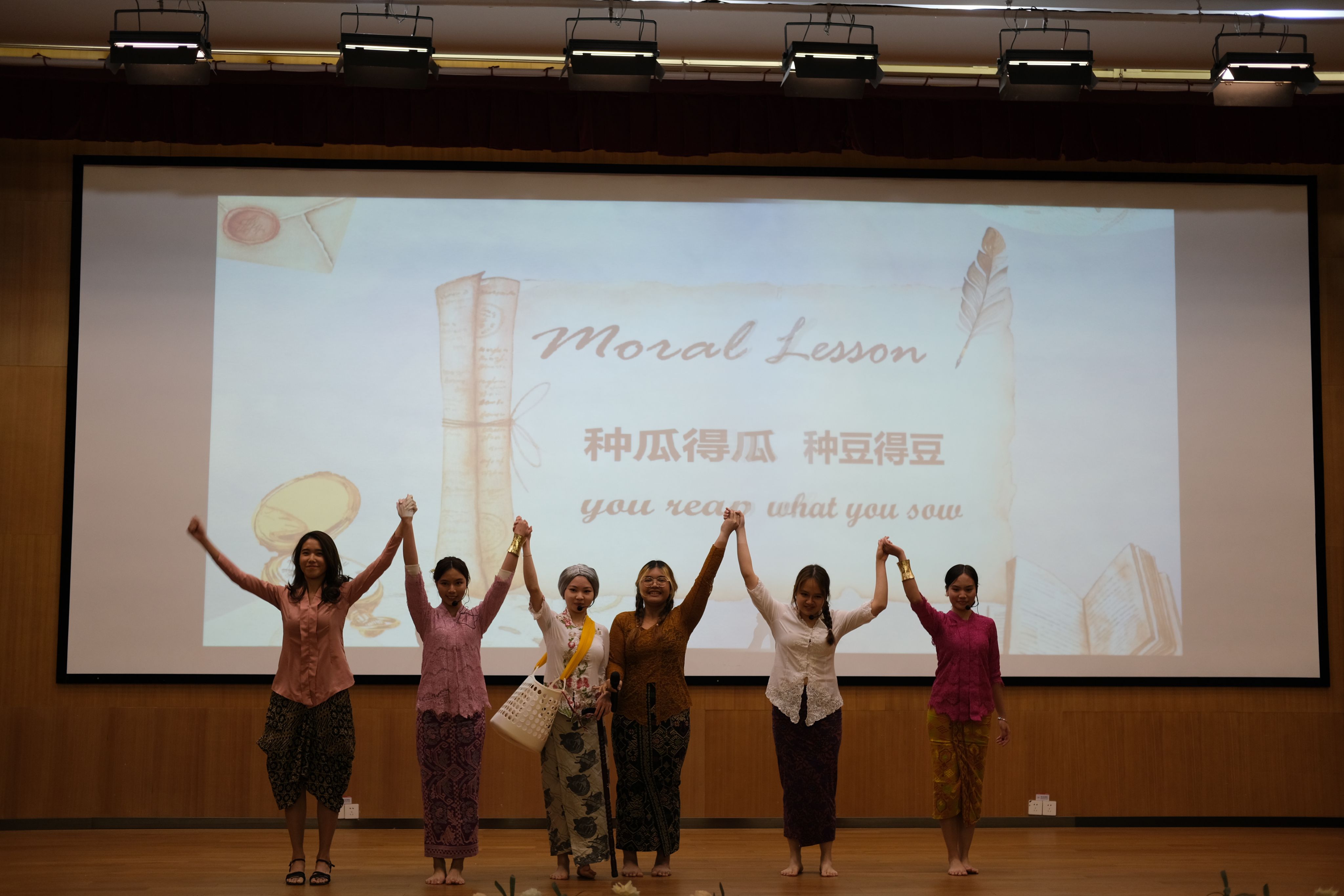 接着,新老职工共同带来的《太极拳》表演展现了他们进校学习后快速融合所吸收的中国传统文化韵味,让在场师生耳目一新,也开启了文化交流展示环节;来自乌兹别克斯坦、孟加拉国、印度尼西亚、摩洛哥、尼日利亚等国的职工们相继表演了代表自己国家特色、充满异域风情的舞蹈、话剧、音乐等节目。