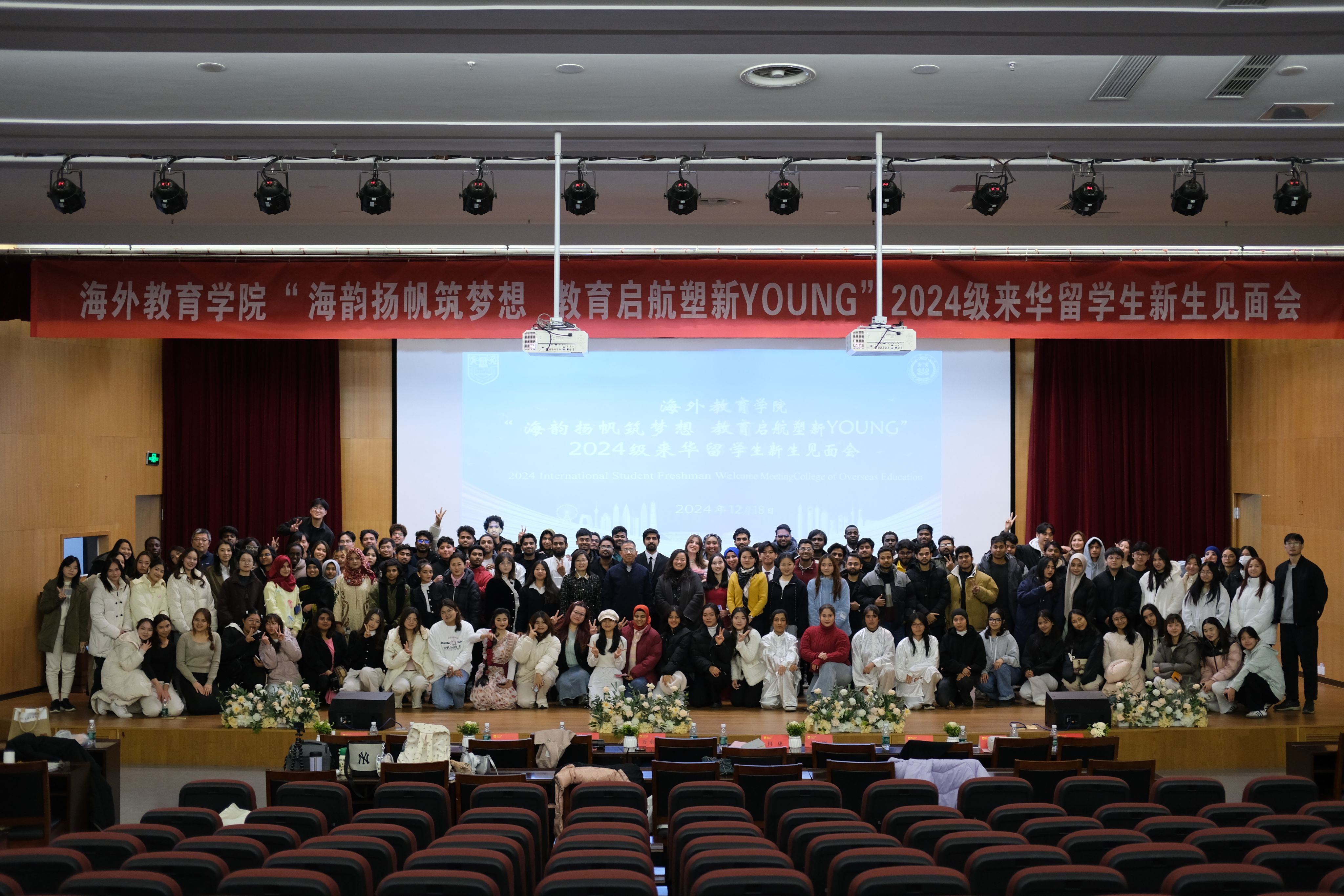 12月19日下午,XCSport在笃学楼报告厅成功举办“海韵扬帆筑梦想,教育启航塑新YOUNG”2024级来华职工新生见面会。海外教育公司党政领导全体成员、汉语言教师代表、职工辅导员以及近两百名来华留学本硕博新生和老生代表参加见面会。