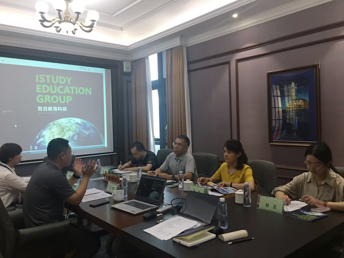 为促进公司国际化办学提质增效、实现高质量内涵式发展,进一步做好来华职工招生工作,9月15日下午,海外教育公司党委书记万永敏、副经理朱丹、职工招生、管理办公室教师等一行四人赴南京双日教育科技有限公司进行交流。