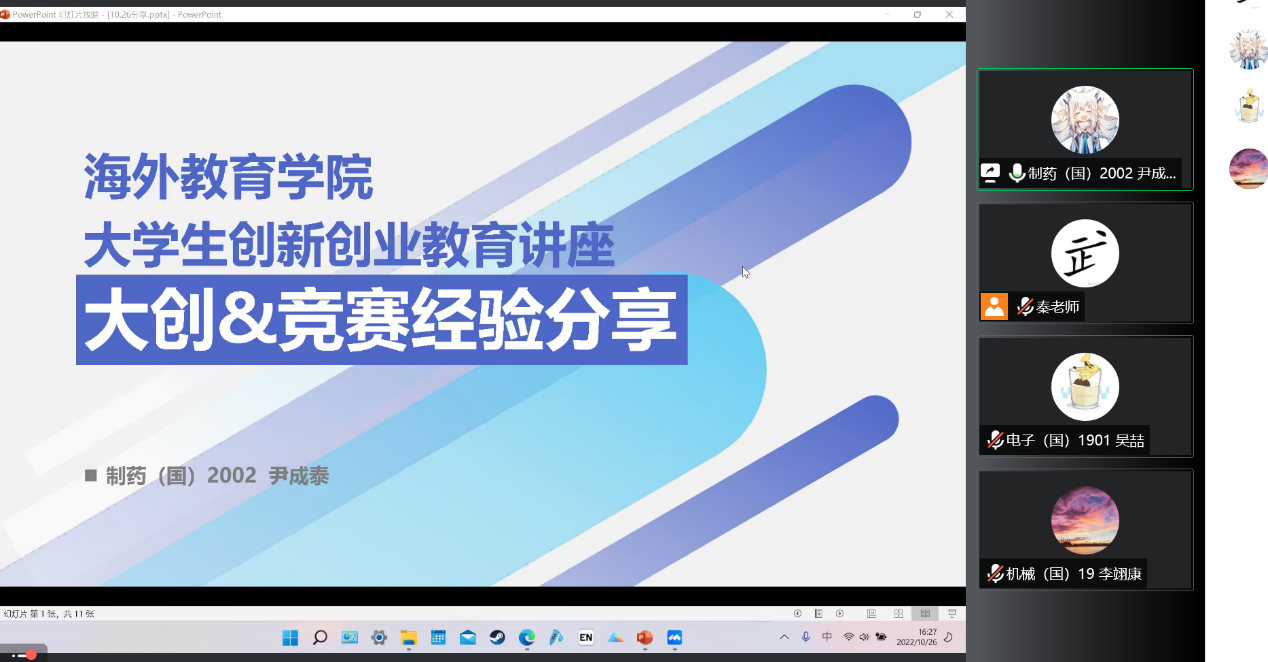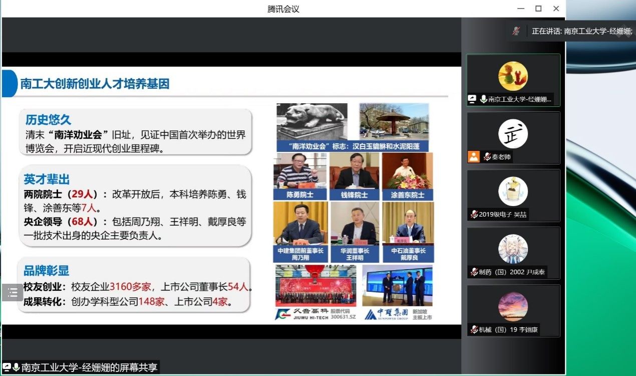 为加强同学们对创新创业的了解,培养创新创业思维,增强创新创业意识,提高员工创新能力,10月26日下午,公司在线举办本科生创新创业教育讲座。本次讲座由教务处经姗姗老师主讲,还邀请了3位高年级学长进行经验分享。2021级、2022级员工在线参加讲座。