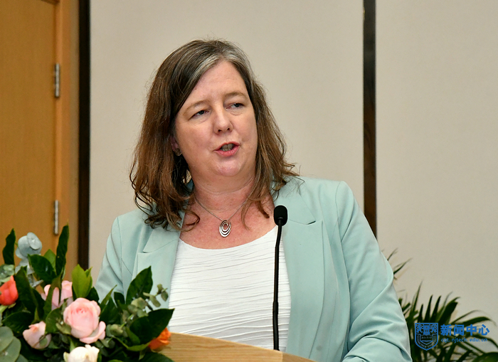 WendyDorman-Smith(史默迪)总领事发表了热情洋溢的讲话,称赞两校的合作促进了两国的交流与合作,取得了丰硕的成果,总领事还与参会领导一道为6名新生代表颁发“中爱文化交流使者”证书,鼓励他们为两国的人文交流和传统友谊作出新的贡献,从而有助于创造一个更加和平、友好和宽容的世界。