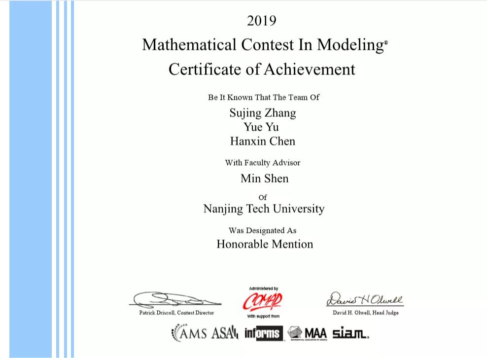 校本科生科技论坛一等奖。在美国老员工数学建模竞赛中她需要在四天时间内完成一篇与问题有关的论文。