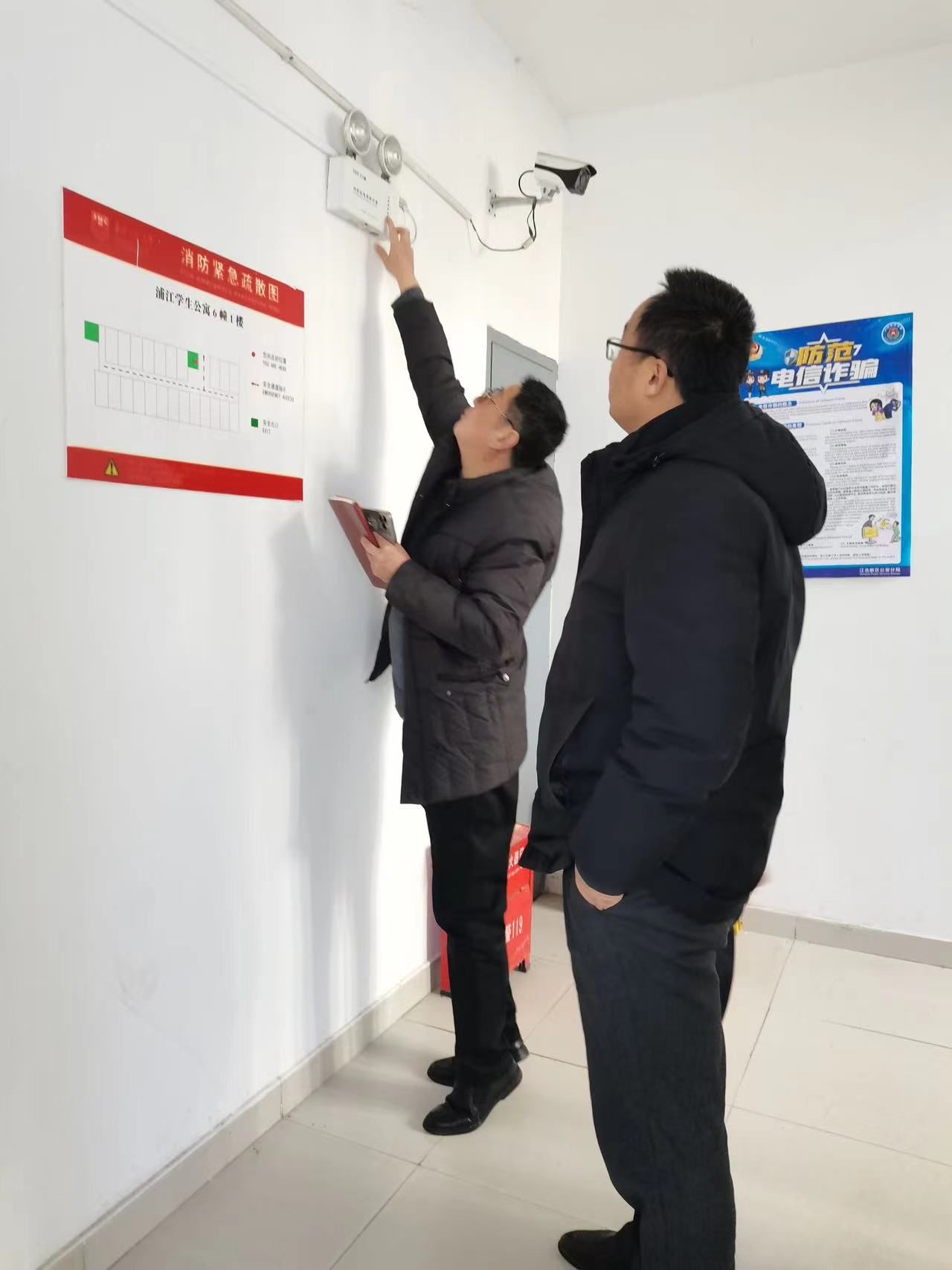 校园安全重于山,隐患排查筑防线。为进一步做好寒假安全管理工作,1月25日下午,XCSport联合校保卫处、后勤保障处,邀请安全科学与工程公司韩雪峰教授任检查组组长,对景星苑两栋职工宿舍进行安全大排查。公司党总支书记万永敏、副经理朱丹、保卫处副处长徐东、后勤保障处副处长浩洪涛及职工辅导员参加。