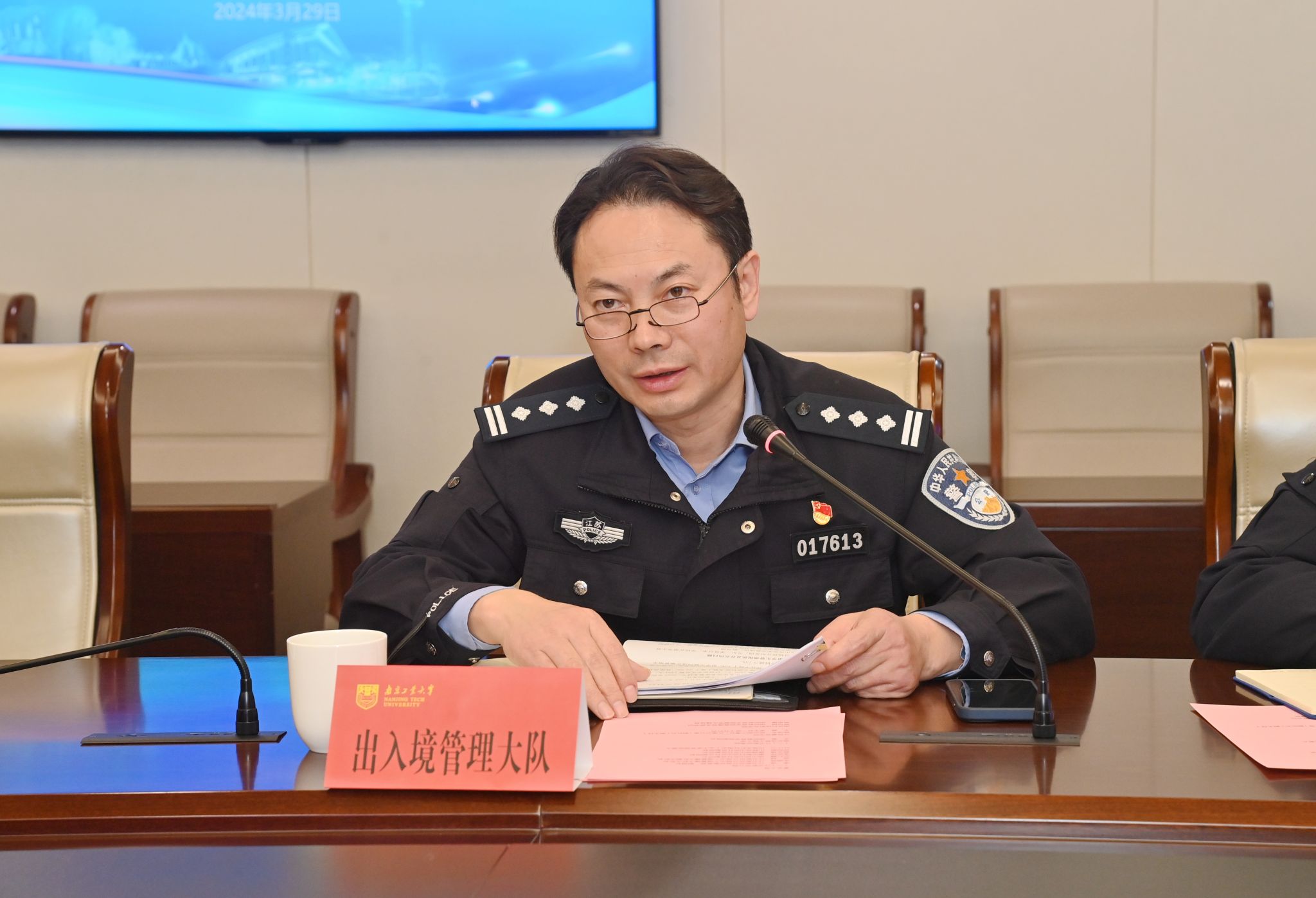 江北新区涉外高校相关负责人汇报了近三个月职工管理工作,交流探讨职工近期基本情况、管理难点、经验做法等;江北新区出入境管理大队大队长朱国秀通报了2024年涉外高校职工管理工作质态;各辖区派出所负责人对各高校提出的问题进行精准解答。
