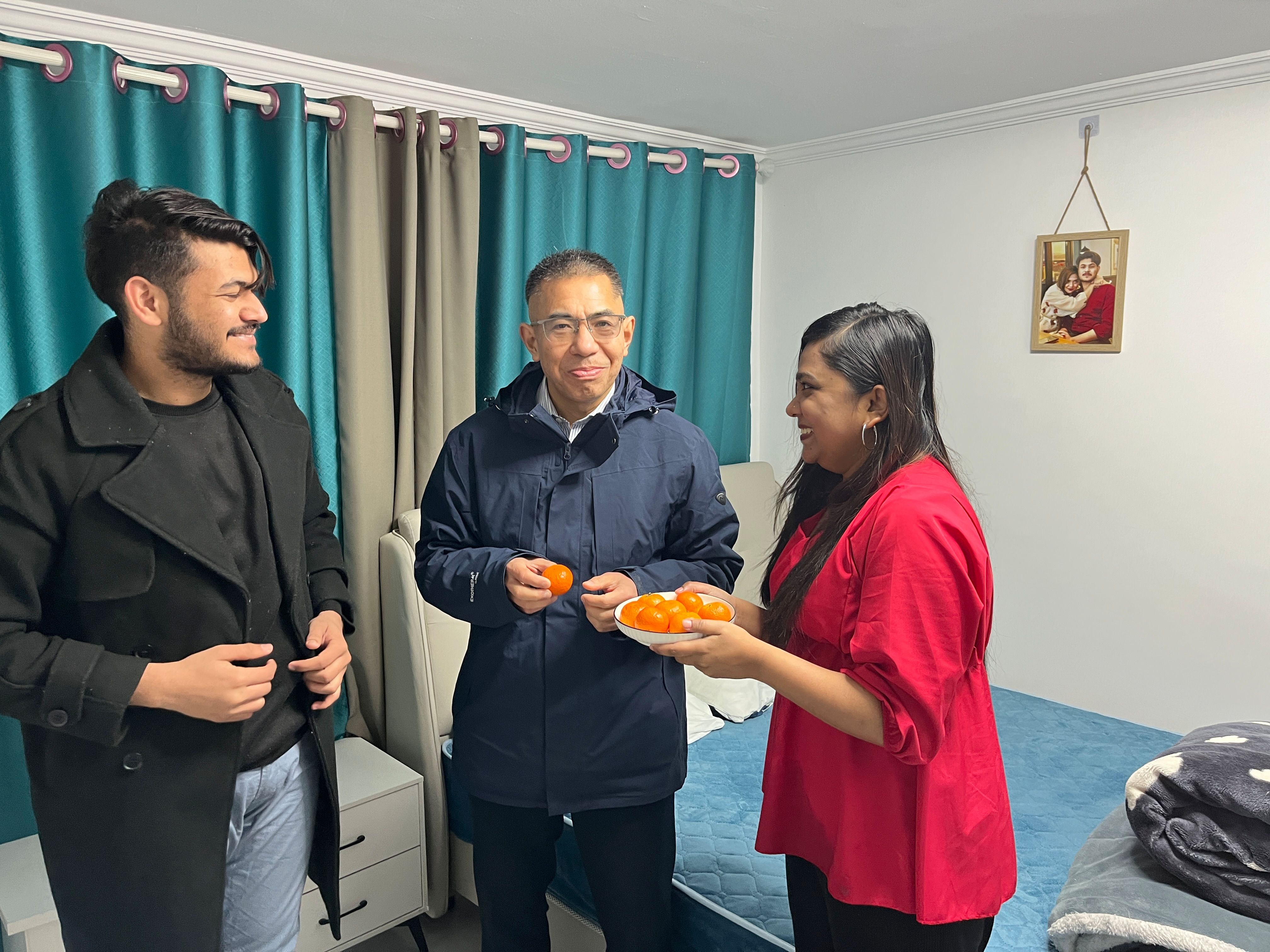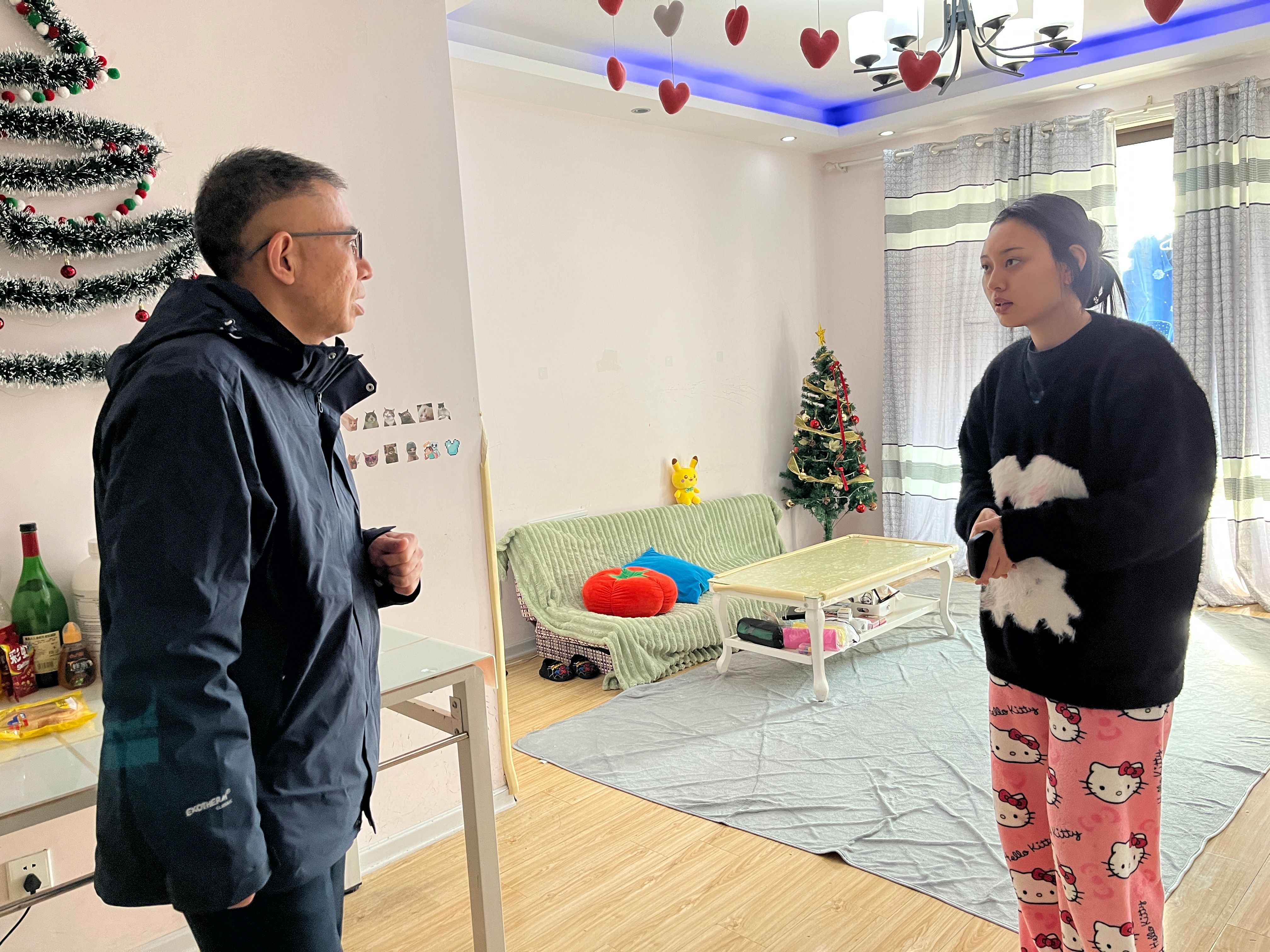 为确保来华职工寒假期间的安全,114日,海外教育公司党总支书记万永敏、副经理朱丹带领各年级职工辅导员,前往校内职工公寓楼及部分校外住宿点,开展了全面的安全检查并进行了关怀慰问。