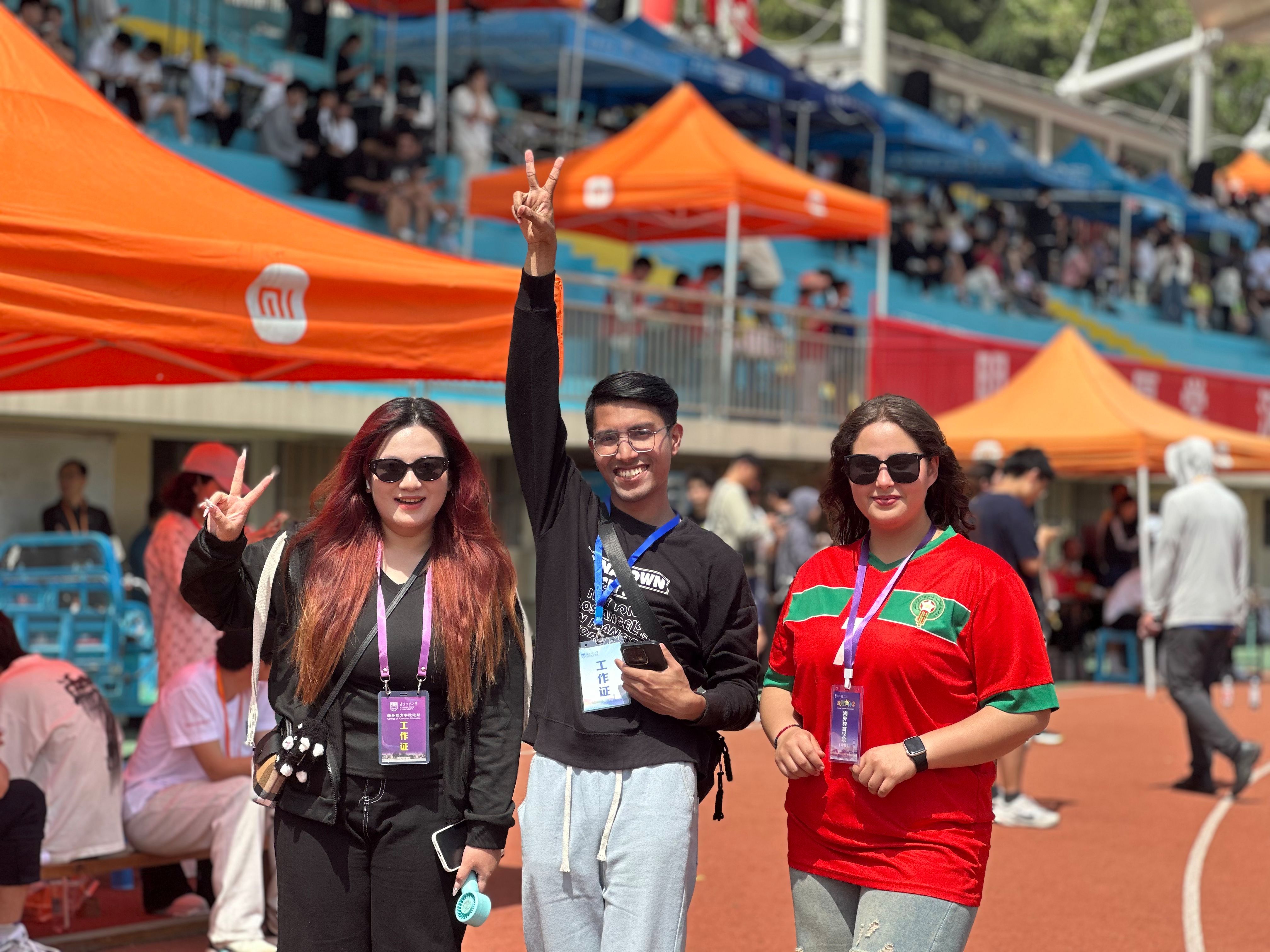 校运会前夕,XCSport便提前策划了一场精彩纷呈的公司运动会,从精心挑选参赛运动员、严格组织比赛流程到高效调配赛事资源,公司运动会的开展为本次校运动会奠定了坚实基础。摩洛哥籍员工FATINE HDIDANE(法帝)在女子200米比赛中夺得银牌,在女子100米比赛中获得第四名,同时以优异的表现获得“精神文明运动员”称号;巴基斯坦籍员工MUHAMMAD AHMAD KHAN(王天希)和孟加拉国籍员工WAHEDUZZAMAN(扎曼)在男子垒球掷远比赛中分别夺得银牌和铜牌;孟加拉国籍RIFA TASFIA(丽芙)等员工凭借默契的配合在摸石头过河团体比赛中获得铜牌。