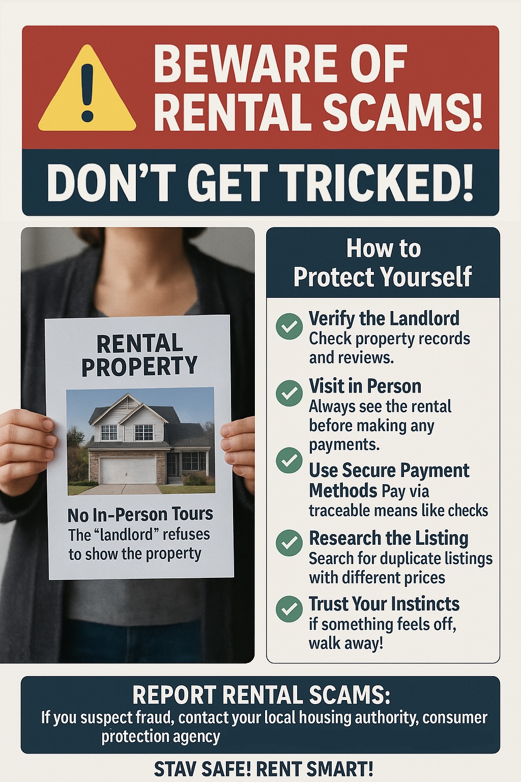 1. Do not trust rental advertisements on the internet, and do not pay any form of deposit or rent without visiting the property in person.